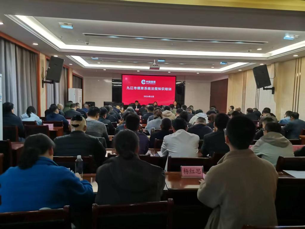 3月24日上午,江西省烟草公司九江市公司2026年全市烟草系统法规知识培训班开班式在永利集团濂溪宾馆二楼会议室举行。77779193永利官网集团院长郑祚双、副院长邓明亮、江西省烟草公司九江市公司法规科科长江南出席开班式。仪式由邓明亮主持。