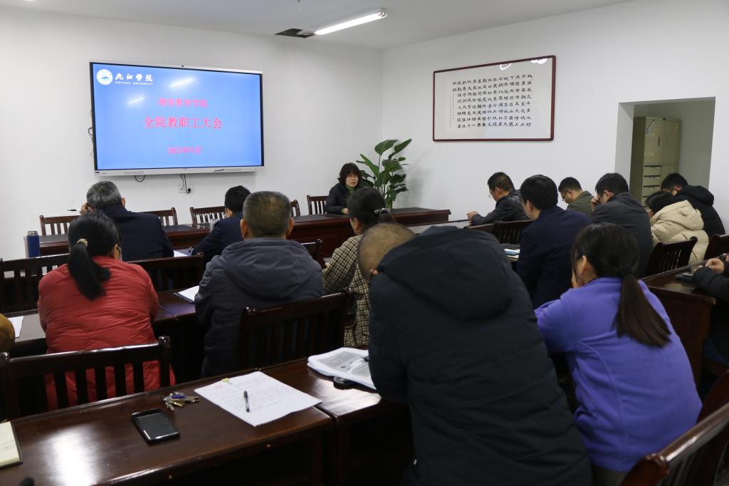 王英姿传达了学校创建全国文明城市工作推进会会议精神。她要求全院教职工踊跃参与文明城市创建,抓好创建应知应会应做的知识学习,营造“人人知晓文明创建、人人参与文明创建”的浓厚氛围。