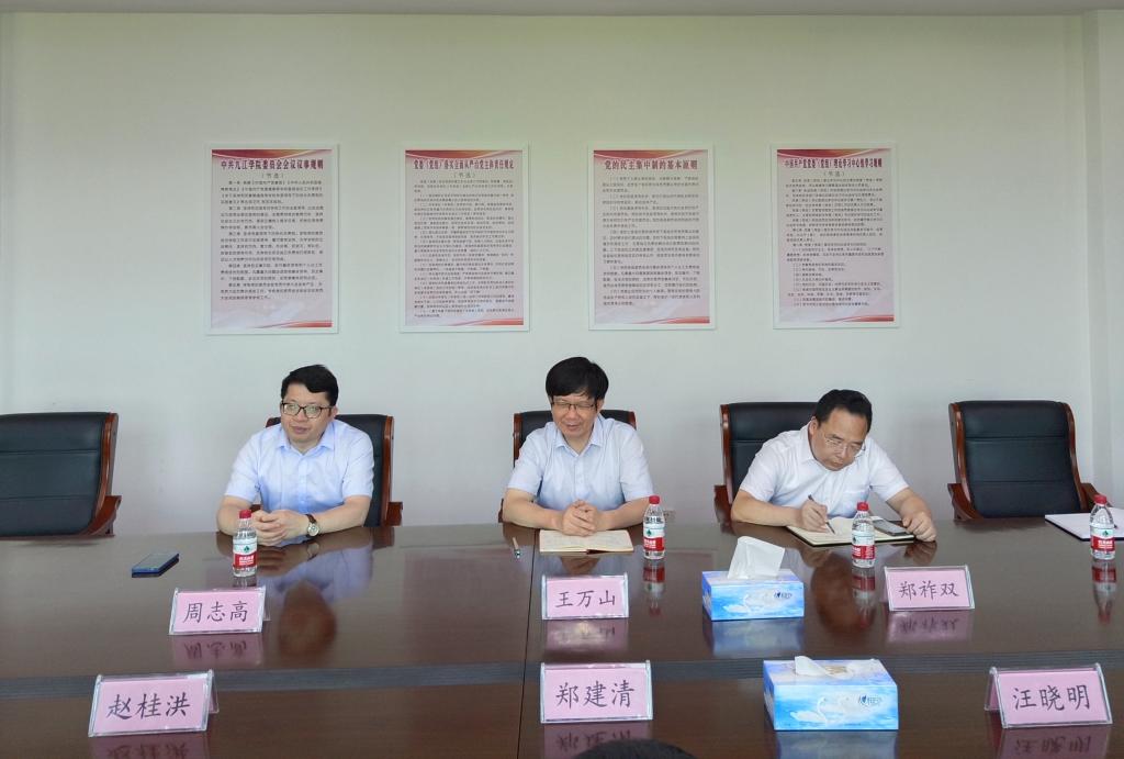 6月26日下午,江铜集团城门山铜矿党委书记郑建清、矿长赵桂洪一行来我校调研,副校长王万山及77779193永利官网集团、外国语学院负责同志参加调研会。