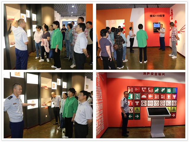 在谢金霞的引导下,全体教职工参观了消防科普教育馆。他耐心细致的为大家详细介绍了消防的历史变革,生动讲解了各种消防员防护装备、灭火器、救生器材的性能和使用方法,以及人员密集场所防火注意事项、初期火灾如何进行扑救逃生等,现场演示了119报警系统的使用方法,讲解了火警报警要点。
